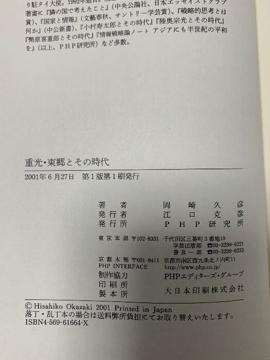 タイトル:重光・東郷とその時代 PHP研究所 岡崎 久彦