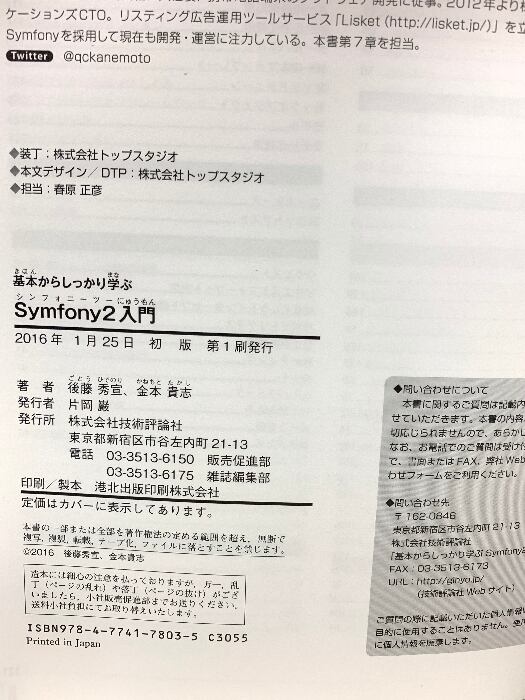 タイトル:初版 基本からしっかり学ぶ Symfony2入門 技術評論社 後藤 秀宣