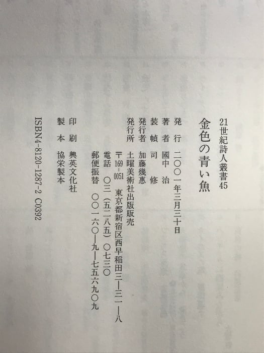金色の青い魚 (21世紀詩人叢書 45) 土曜美術社出版販売 國中治