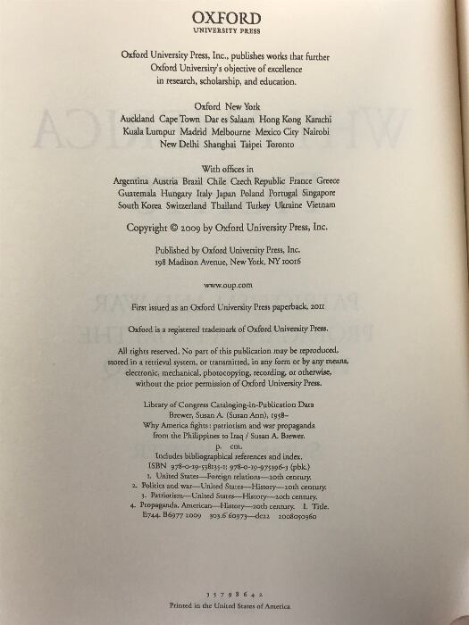 Why America Fights: Patriotism and War Propaganda from the Philippines to Iraq Oxford University Press Susan A.Brewer