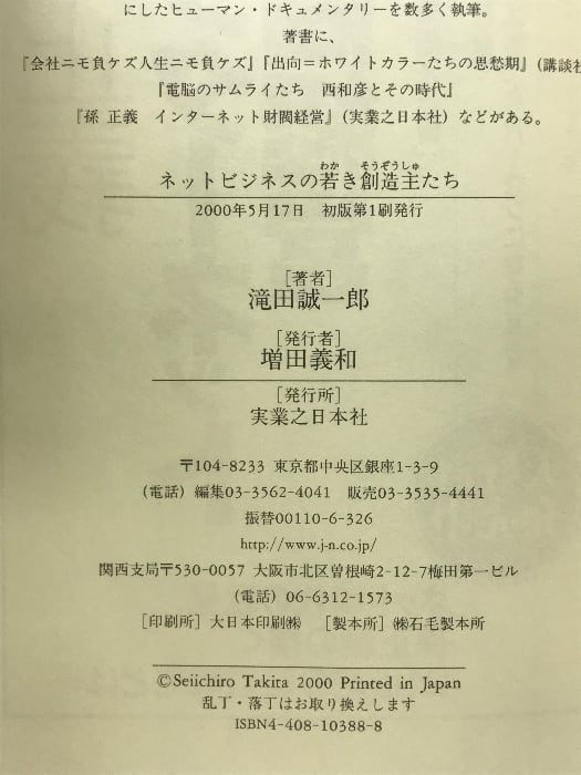 タイトル:ネットビジネスの若き創造主たち 実業之日本社 滝田 誠一郎