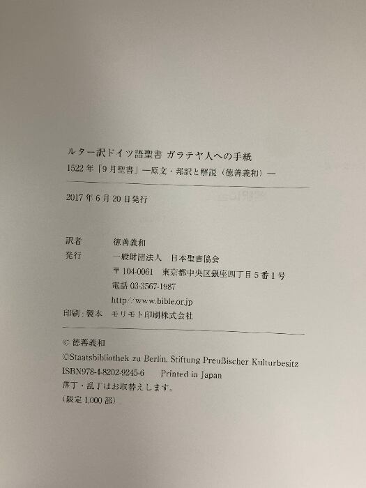 タイトル:ルター訳ドイツ語聖書ガラテヤ人への手紙 1522年「9月聖書」 日本聖書協会 2017