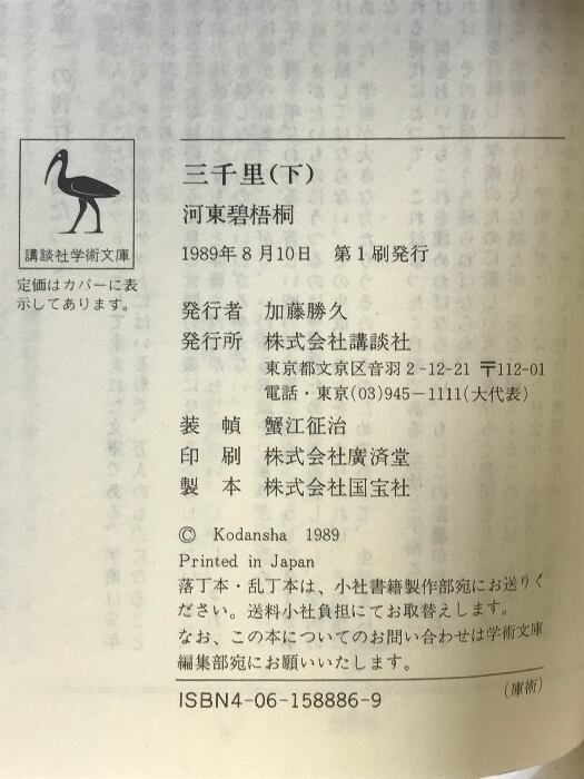 タイトル:三千里 下 (講談社学術文庫 886) 講談社 河東 碧梧桐