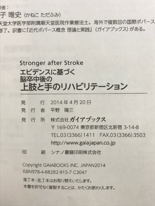 タイトル:エビデンスに基づく脳卒中後の上肢と手のリハビリテーション ガイアブックス ピーター・G・レビン