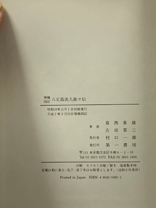 タイトル:八丈島流人銘々伝 第一書房 葛西 重雄