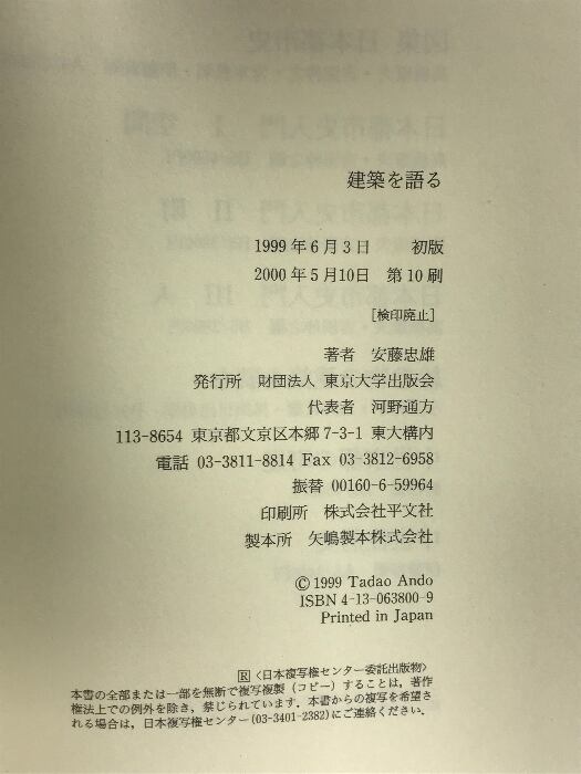タイトル:安藤忠雄 建築を語る 東京大学出版部 2000年