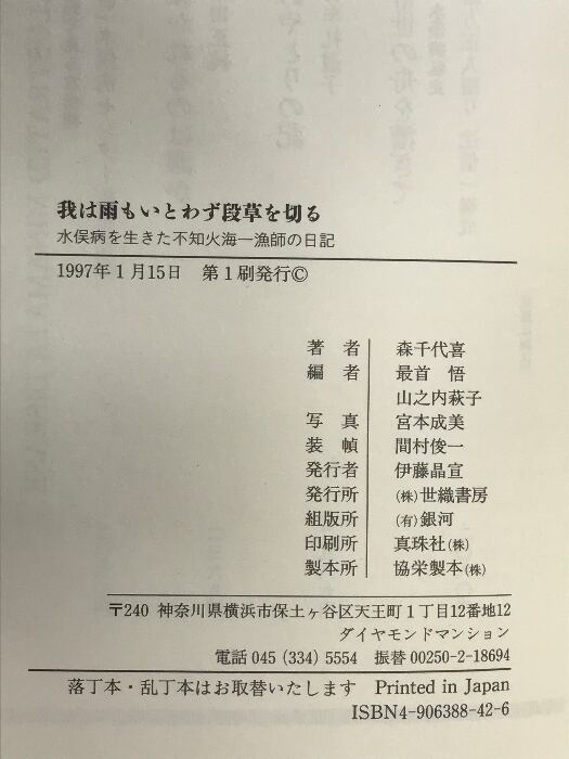 タイトル:我は雨もいとわず断草を切る: 水俣病を生きた不知火海一漁師の日記 世織書房 森 千代吉