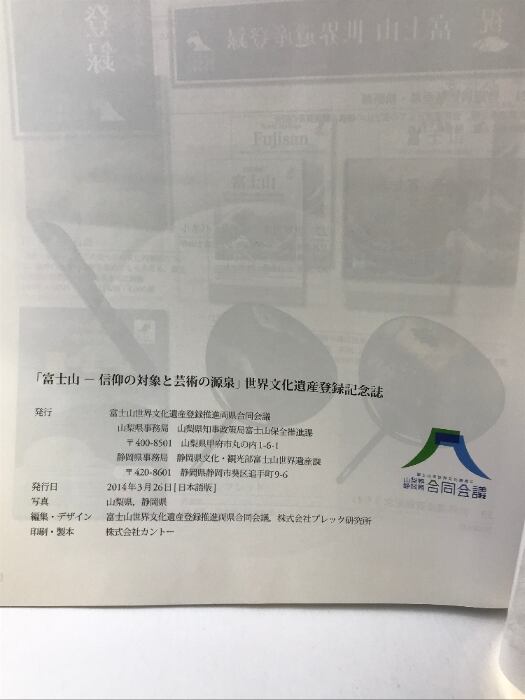 タイトル:世界遺産 『富士山』 -信仰の対象と芸術の源泉- 富士山世界文化遺産登録推進両県合同会議 2014年