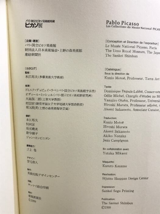 タイトル:【図録】ピカソ展 Pablo PICASSO 1999 発行:産経新聞社