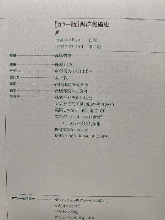 タイトル:西洋美術史 カラー版 監修 高階秀爾 美術出版社