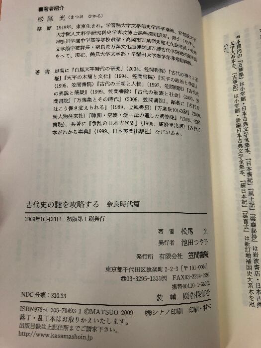 古代史の謎を攻略する 奈良時代篇 笠間書院 松尾 光