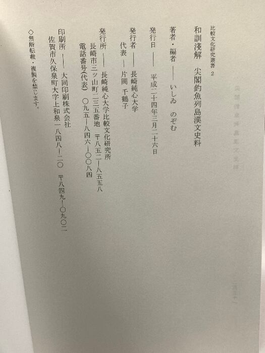 タイトル:尖閣釣魚列島漢文史料 いしゐのぞむ 長崎純心大学皮革文化研究所