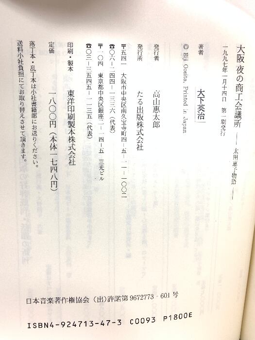 タイトル:大阪夜の商工会議所: 太田恵子物語 たる出版 大下 英治