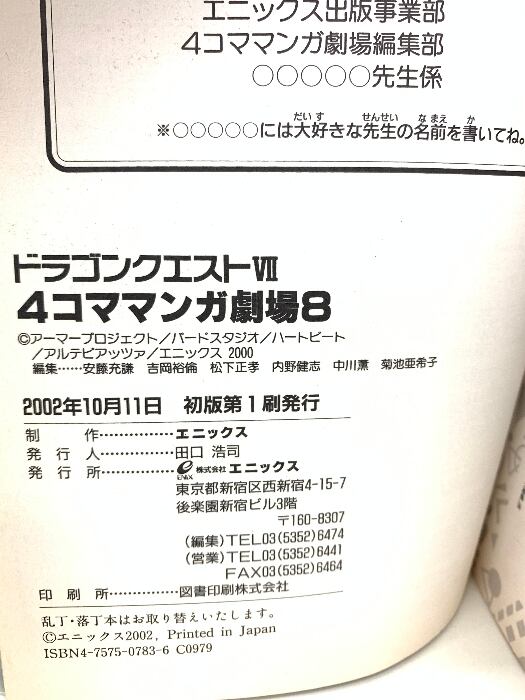タイトル:ドラゴンクエスト7 4コママンガ劇場 8 スクウェア・エニックス