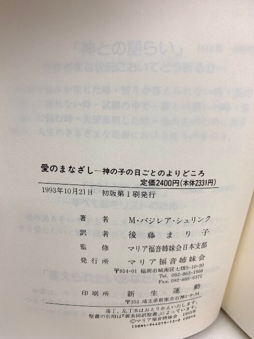 タイトル:愛のまなざし 神の子の日ごとのよりどころ M・バジレア・シュリンク マリア福音姉妹会