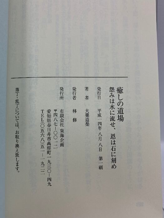 癒しの道場 怨みは水に流せ、恩は石に刻め 東海企画 大栗 道榮