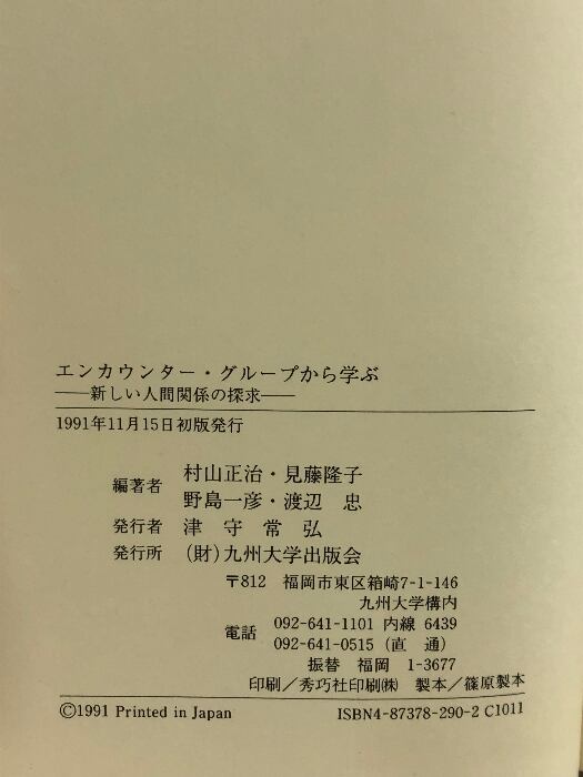 タイトル:エンカウンター・グループから学ぶ: 新しい人間関係の探求 九州大学出版会 村山 正治