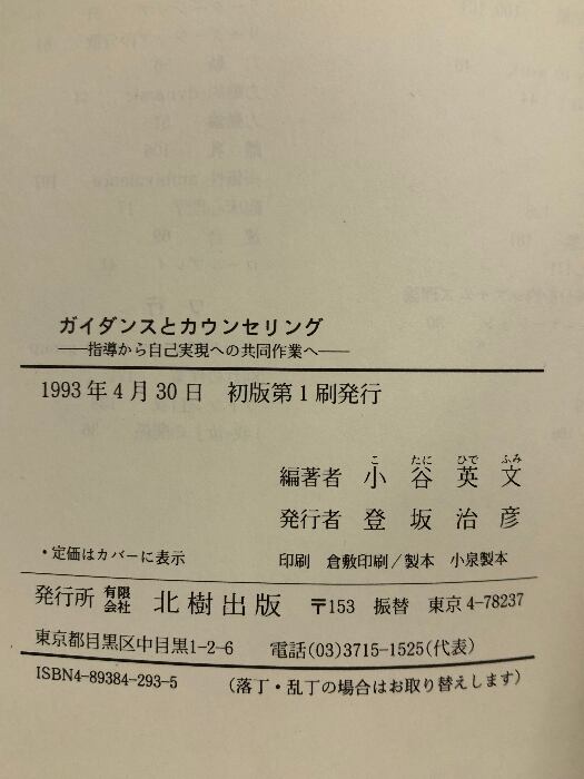 タイトル:ガイダンスとカウンセリング―指導から自己実現への共同作業へ 北樹出版 小谷 英文