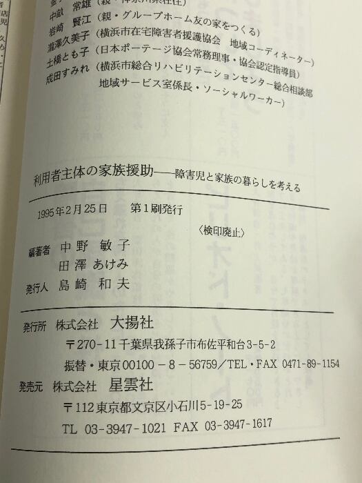 タイトル:利用者主体の家族援助: 障害児と家族の暮らしを考える 大揚社 中野 敏子
