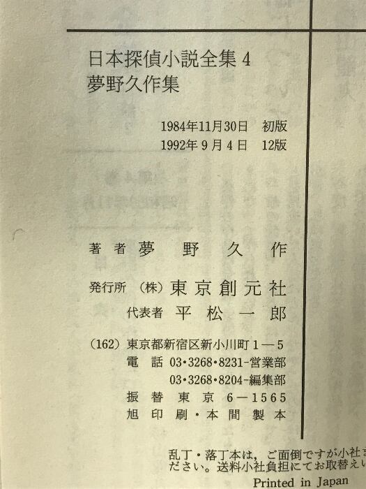日本探偵小説全集〈4〉夢野久作集 (創元推理文庫) 東京創元社 夢野 久作