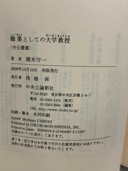 職業としての大学教授 (中公叢書) 中央公論新社 潮木 守一