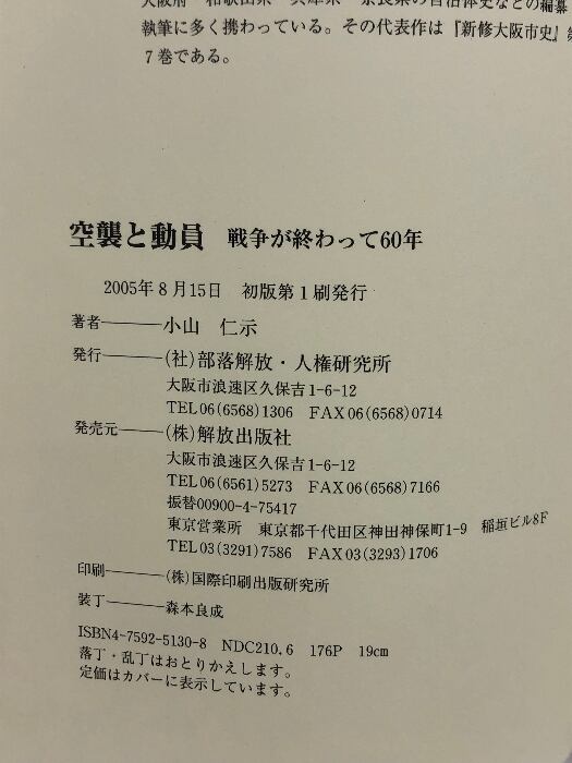 タイトル:空襲と動員: 戦争が終わって60年 部落解放・人権研究所 小山 仁示