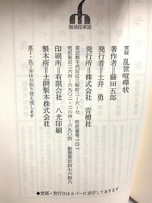 タイトル:実録乱世喧嘩状 青樹社 藤田 五郎