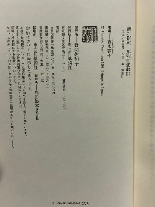 タイトル:謎の毒薬: 推究帝銀事件 講談社 吉永 春子