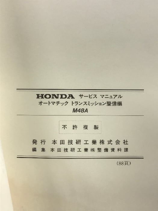 タイトル:(7)サービスマニュアル HONDA オートマチックトランスミッション整備編 M48A 91-9 M48A型(1000001~)60P4800
