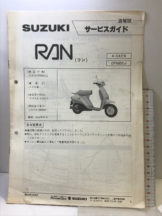 タイトル:(14)SUZUKI サービスガイド(追補版)RAN(ラン) A-CA17A CF50DCJ 昭和63年