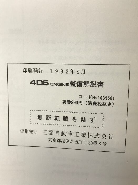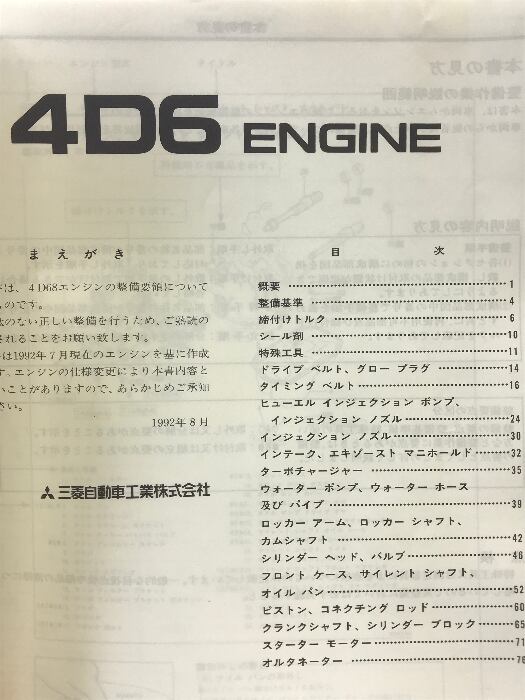 タイトル:(16)MITUBISHI 整備解説書 4D6 ENGINE (NO.1039561) (ミラージュ・ランサー・リベロ・カーゴ・他)92-8 三菱自動車
