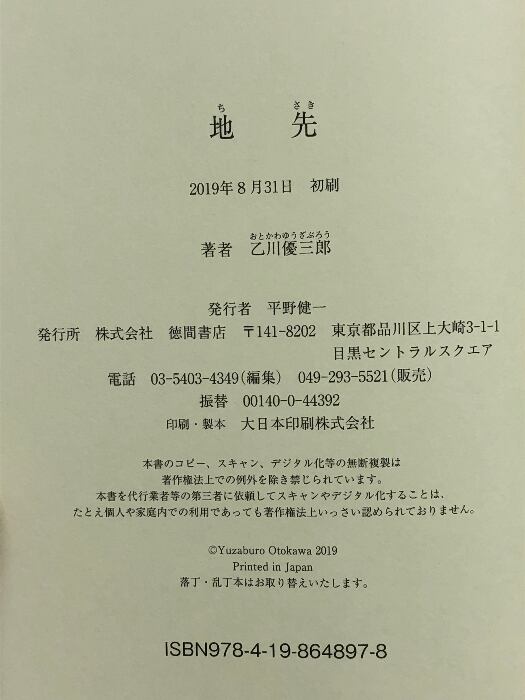 タイトル:地先 (文芸書) 徳間書店 乙川優三郎
