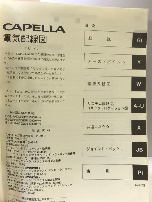 タイトル:(22)CAPELLA 電気配線図 E-CG2PP E-CG2SP E-CG2SR 1994-7 WD084 1 マツダ株式会社