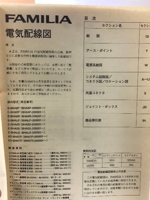 タイトル:(23)FAMILIA 電気配線図 E-BHA8P E-BHA5P E-BHA6R E-BHALP 他5種 1995-6 (WD098 1)マツダ株式会社