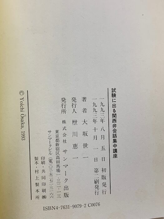 タイトル:試験に出る関西弁会話集中講座: 必須単語からボケ・ツッコミまで サンマーク出版 大坂 世一