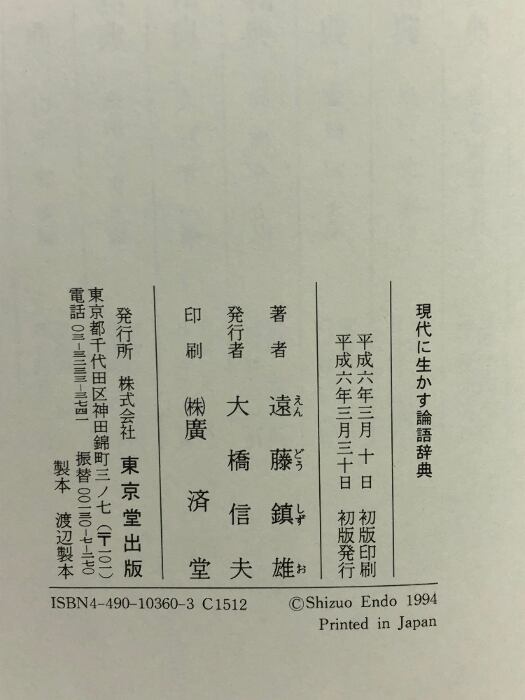 タイトル:現代に生かす論語辞典 東京堂出版 遠藤 鎮雄