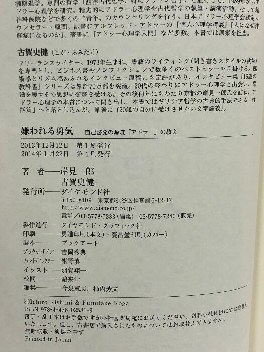 タイトル:嫌われる勇気 自己啓発の源流「アドラー」の教え ダイヤモンド社 岸見 一郎