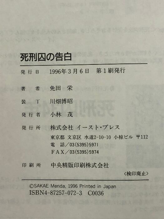 タイトル:死刑囚の告白 イースト・プレス 免田栄