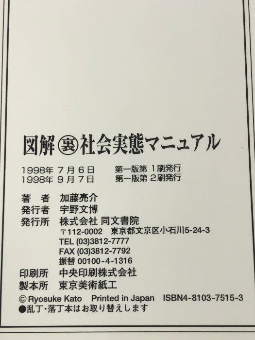 タイトル:図解マル裏社会実態マニュアル: 自己破産、マルチ商法からドラッグ、密輸拳銃流出まで 同文書院 加藤 亮介