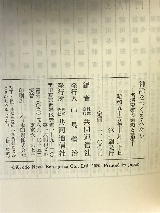 神話をつくる人たち―名演奏家の素顔と芸術 (FM選書) 共同通信社 共同通信社