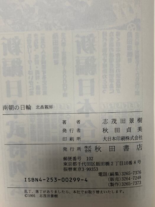 タイトル:南朝の日輪北畠親房 秋田書店 志茂田 景樹
