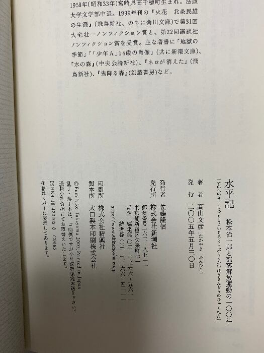 タイトル:水平記 松本治一郎と部落解放運動の一〇〇年 新潮社 高山 文彦