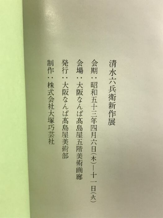 【図録】清水六兵衛新作展 1978年 大阪なんば高島屋