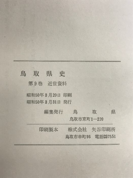 タイトル:鳥取県史(9) 近世資料 昭和50年