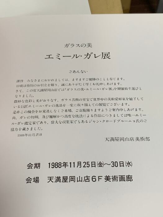 図録 エミール・ガレ展 ガラスの美 天満屋 1988