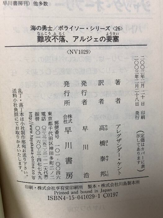 タイトル:難攻不落、アルジェの要塞 (ハヤカワ文庫 NV ケ 1-26 海の勇士/ボライソー・シリーズ 26) 早川書房 アレグザンダー ケント