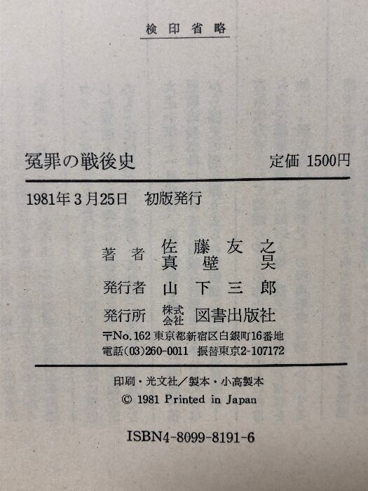 冤罪の戦後史 つくられた証拠と自白 図書出版社 佐藤友之