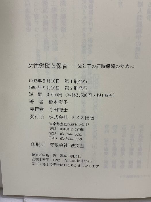 タイトル:女性労働と保育: 母と子の同時保障のために ドメス出版 橋本 宏子