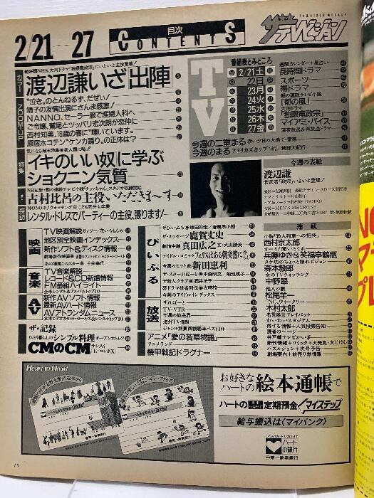 1 ザテレビジョン 中部版 1987 2・27 NO.8 渡辺謙 南野陽子 とんねるず 西村知美