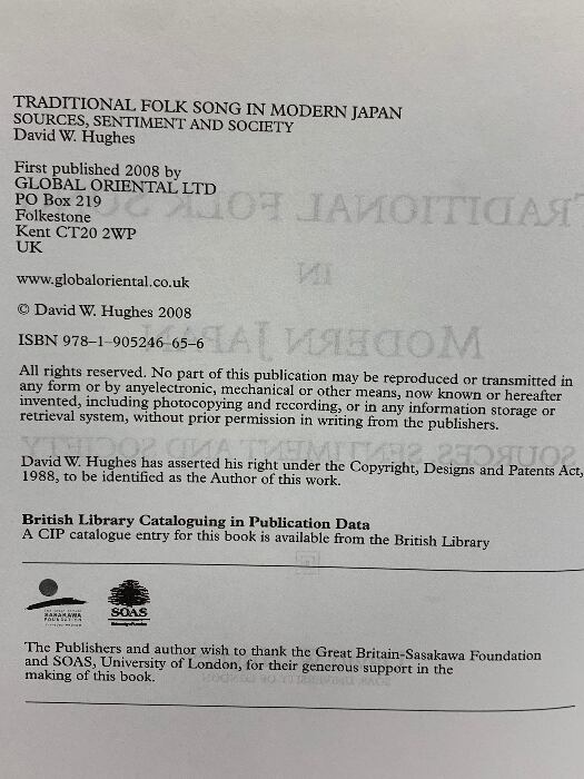 タイトル:洋書 Traditional Folk Song in Modern Japan: Sources, Sentiment, and Society Global Oriental David W. Hughes,